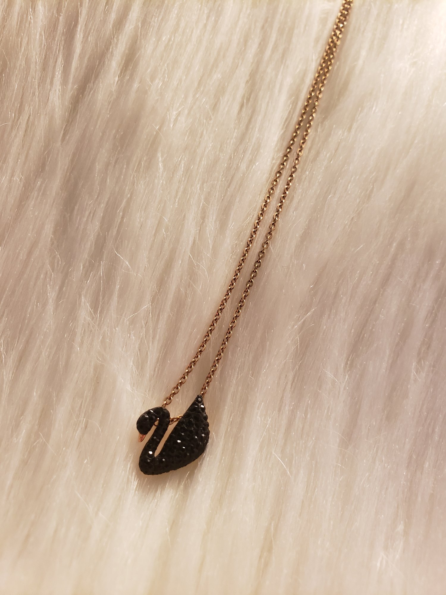 Beautiful Swarovski crystal black swan necklace by Pandora. 14k gold chain. Free shipping. More pictures on our instagram @petrichor_god
